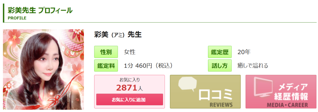 彩美先生は、霊感霊視を使った鑑定で人気の占い師です。