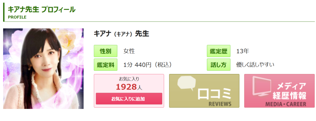 占い師は200名以上在籍しているためかなり迷いましたが、口コミ評価が高く恋愛相談に強いと評判だったキアナ先生にお願いしました。
